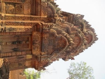 Puis nous voila reparti comme beaucoup d’autres touristes vers Le temple de Banteay Srei (la citadelle des femmes, est situé sur le site de l’ancienne ville d’Iśvarapura (la cité du seigneur, c’est-à-dire la cité de Shiva) à 30 KM du premier. C’est une petit temple mais magnifique avec toutes ses sculptures. Beaucoup de français parmi les touristes…..